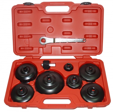 Съёмники изготовлены в форме чашек из штампованной инструментальной стали. Для предотвращения появления коррозии, каждый съёмник покрыт порошковой эмалью. Съёмники способны выдерживать большие нагрузки. Каждая чашка снабжена усиленной площадкой с посадочным квадратом. Конструкция съёмников в форме чашек исключает повреждение масляного фильтра при его снятии и установке. Возможность использовать привод с посадочным квадратом 1/2"; 3/8"; гаечный ключ или торцевую головку на 21 мм. Для удобства на каждой чашке имеется маркировка её размера. Эта же маркировка дублируется на ячейке хранения в кейсе.