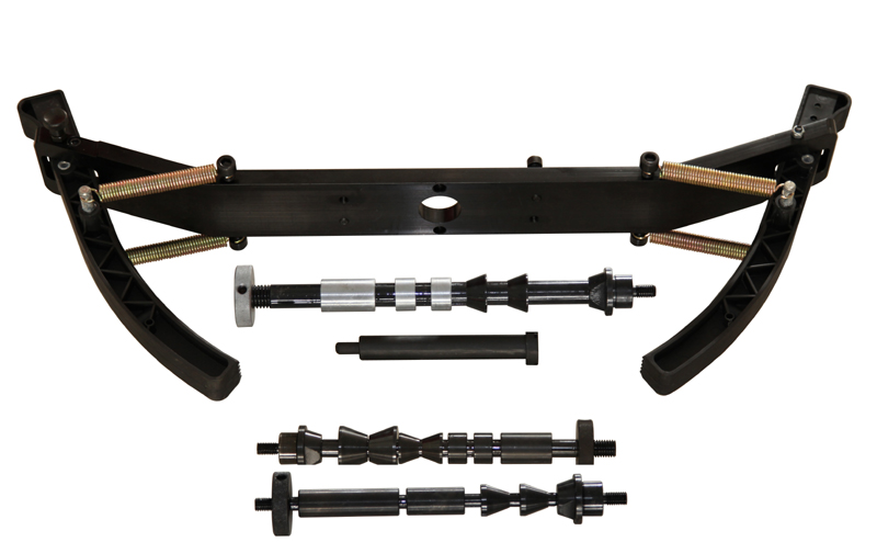 В комплекте вал малого диаметра, несколько маленьких конусов и приспособление для фиксации колеса за шину.