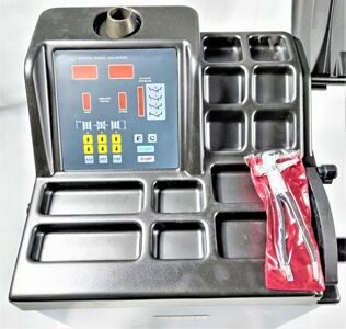 Балансировочный станок, выносной дисплей, автоматическое измерение диаметра и вылета, автостоп колеса для установки грузика, подсветка места установки,   диаметр диска Ø 12-24", ширина диска 1,5-12", вес колеса до 65кг., мотор 220V/0,257 kWt, точность балансировки + 1г.