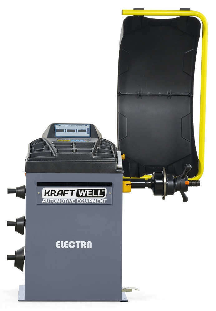 ELECTRA KraftWell Станок балансировочный, автоматический ввод 2-х параметров, цифровой LED дисплей, напряжение 220 В, диаметр дисков 10-24", вес колеса 65 кг, вал 36 мм.