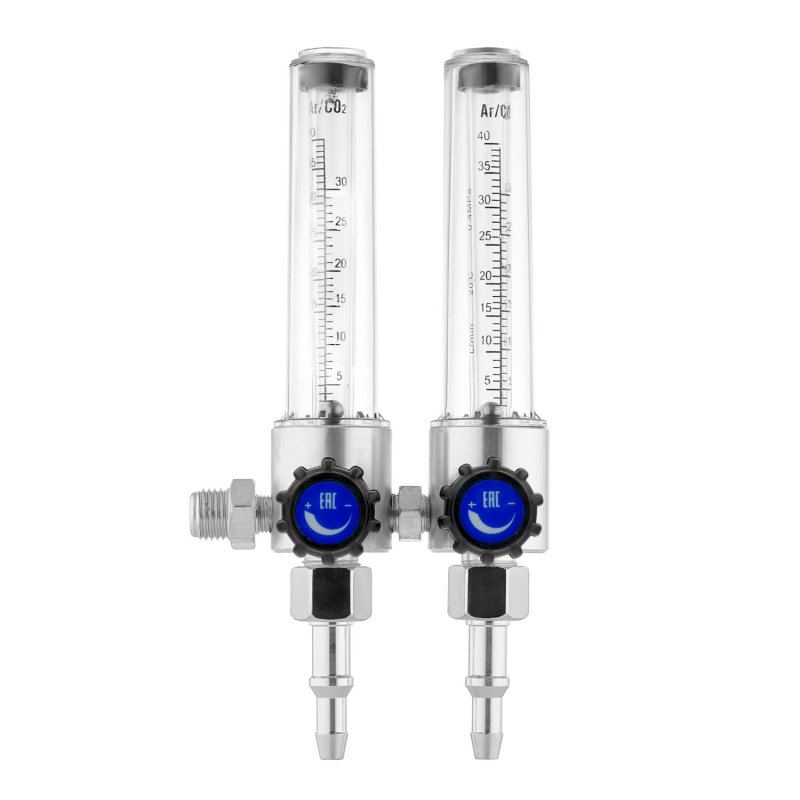 Двойной ротаметр для измерения расхода газообразного аргона и углекислого газа. Ротаметр с штуцером М14х1,5 для присоединения его к регуляторам расхода газа. Поставляется в комплекте с гайками M16х1,5 и универсальными ниппелями.