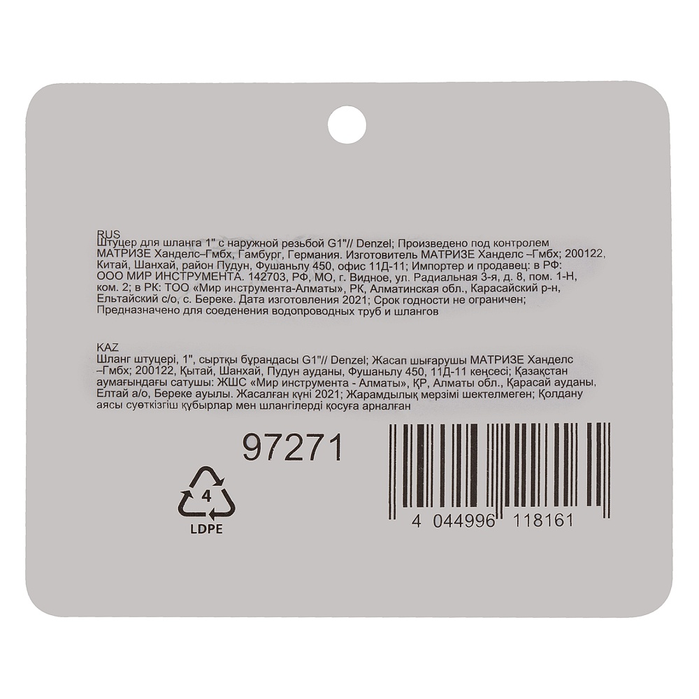 Штуцер для шланга 1" с наружной резьбой G1" Denzel купить в Самаре цена ✅ - Все для СТО
