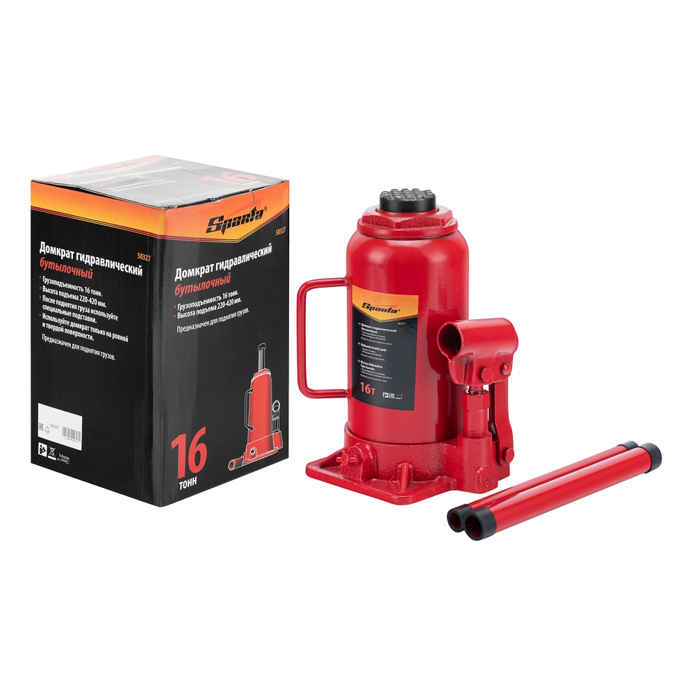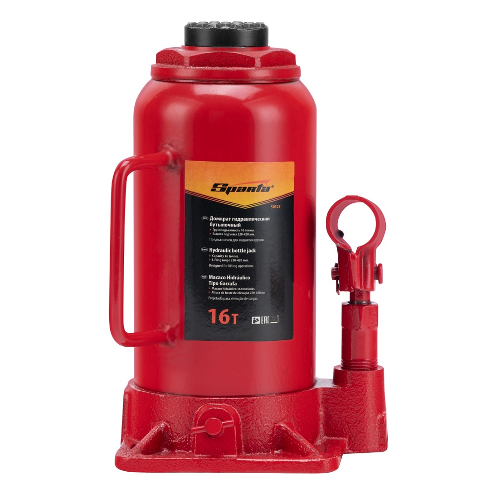 Домкрат гидравлический бутылочный, 16 т, h подъема 220-420 мм Sparta