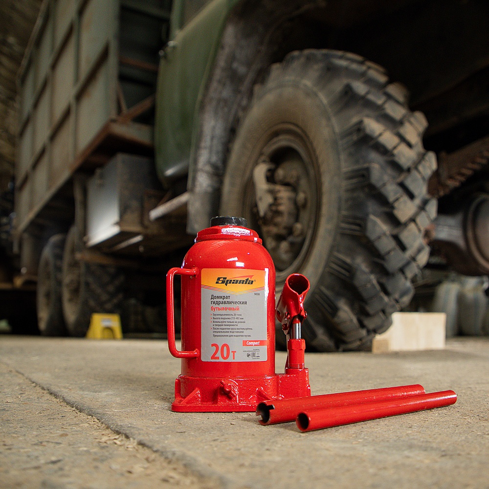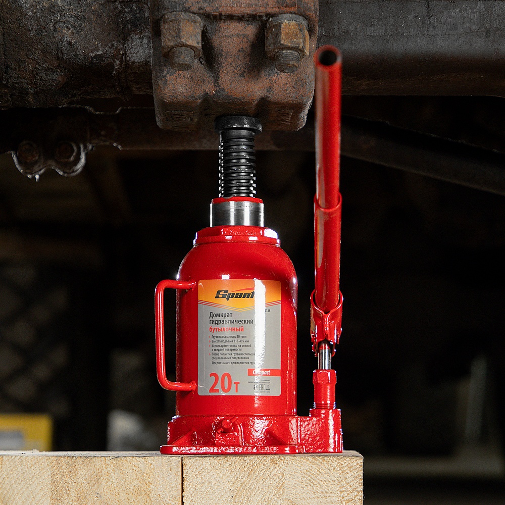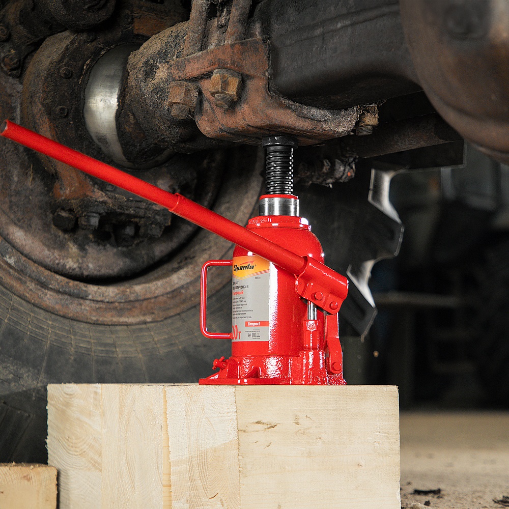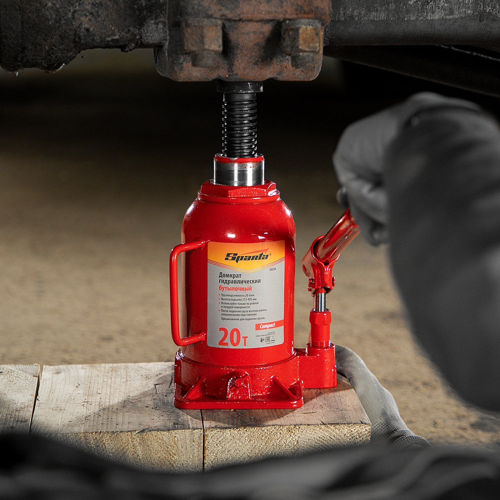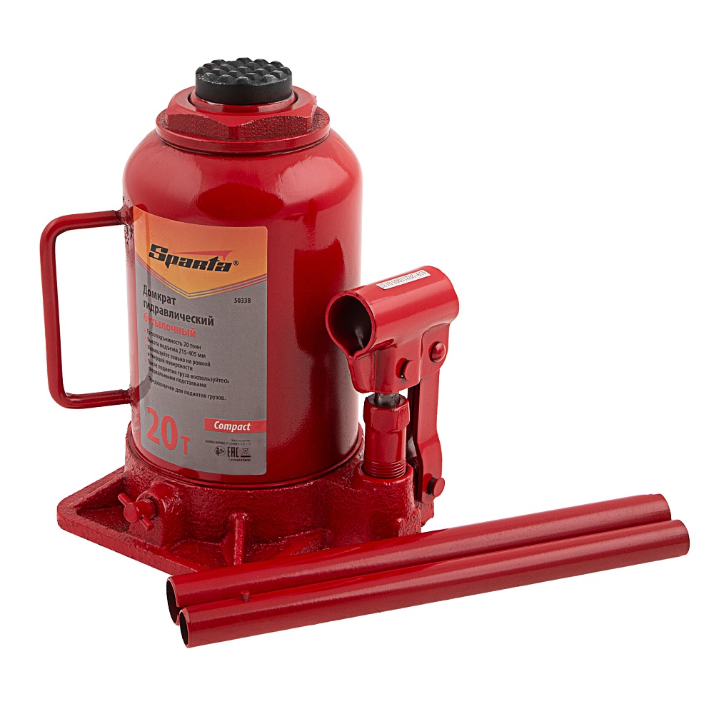 Гидравлический бутылочный домкрат Sparta Compact 50338 предназначен для подъема грузов весом до 20 т на высоту 215-405 мм. Существенно облегчает рабочий процесс, т.к. не требует больших усилий от пользователя. Домкрат будет полезен в автосервисе и гараже для проведения технического обслуживания авто.
