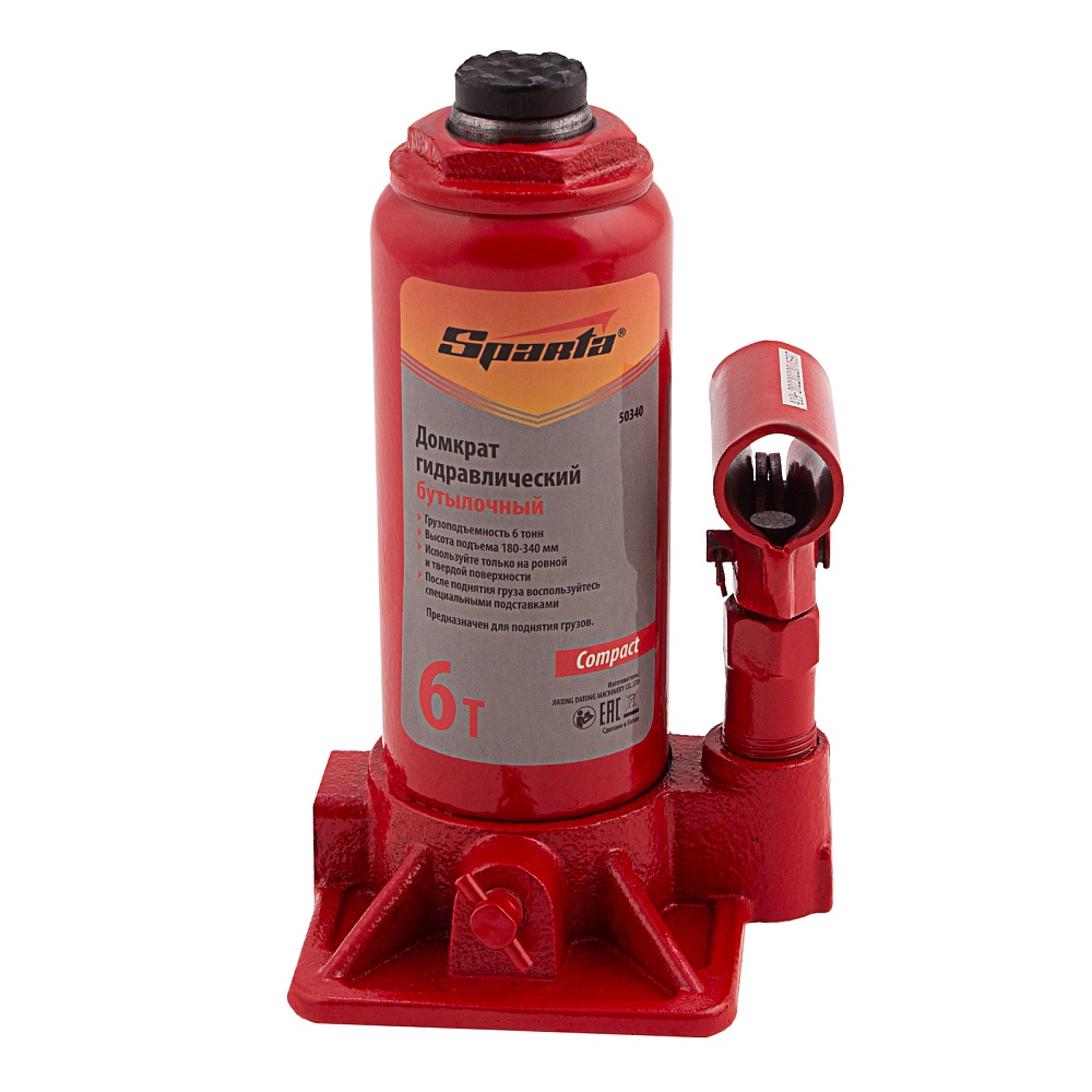 Домкрат гидравлический бутылочный, 6 т, h подъема 180–340 мм Sparta Compact купить в Самаре цена ✅ - Все для СТО