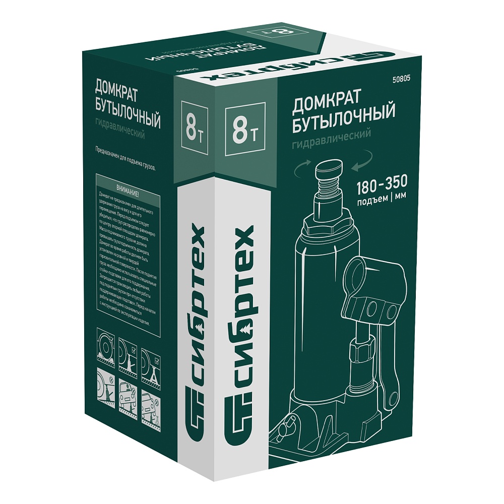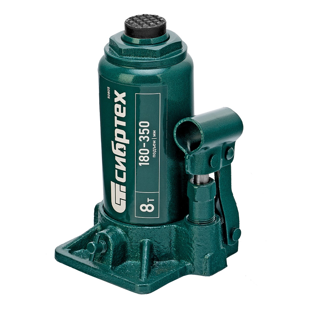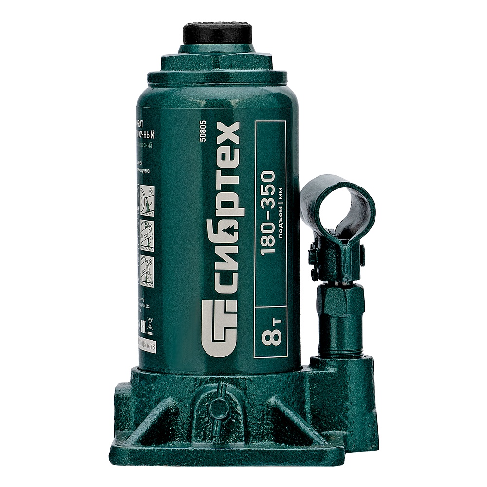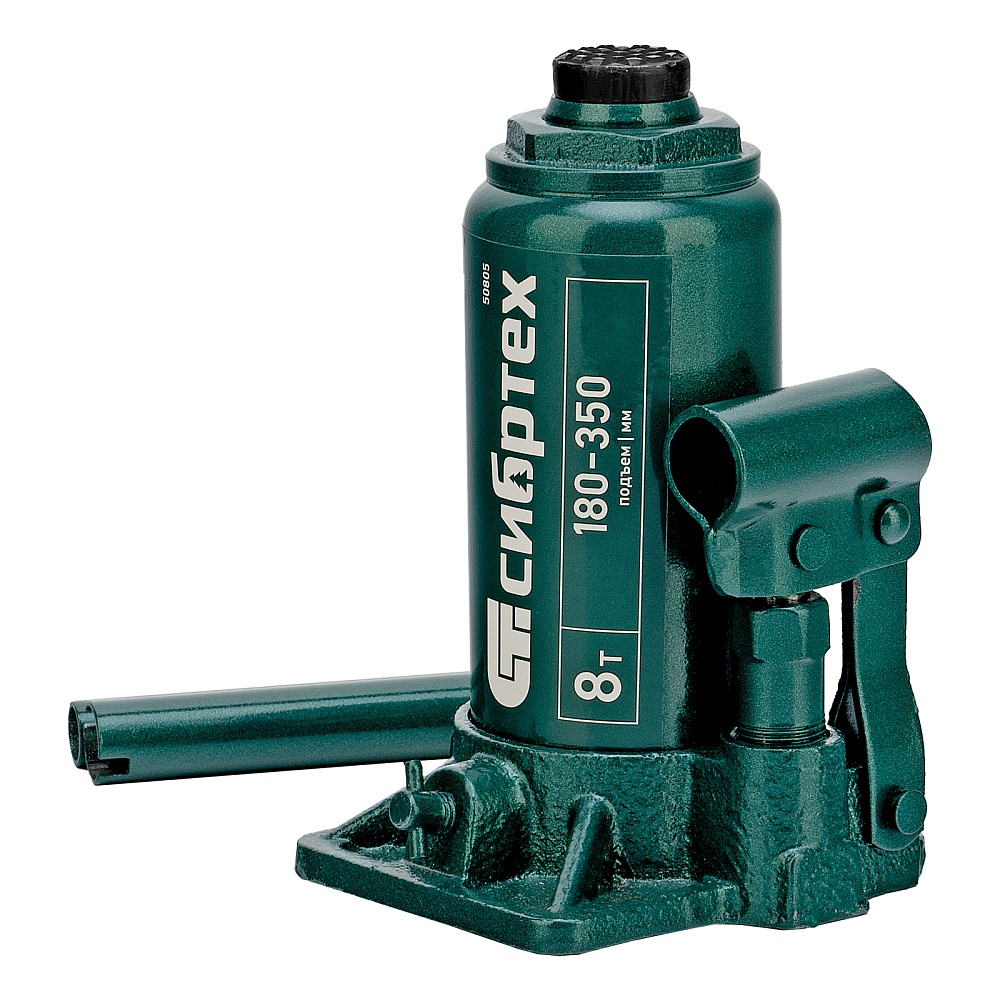 Домкрат гидравлический бутылочный Сибртех 50805 предназначен для подъема грузов массой до 8 т на высоту от 180 до 350 мм. Не требует больших усилий от пользователя и значительно облегчает рабочий процесс. Домкрат будет полезен при проведении техобслуживания машины в автосервисе или гараже.