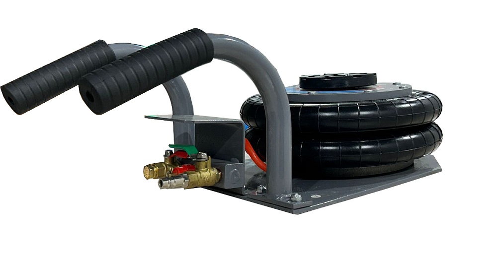 Пневматические домкраты получили не такое широкое распространение, как гидравлические, но при этом остаются достаточно востребованными из-за быстрого подъема, простоты конструкции и удобства использования. Ведь для работы с ним достаточно наличия магистрали сжатого воздуха, которая присутствует в каждом автосервисе или пункте шиномонтажа.