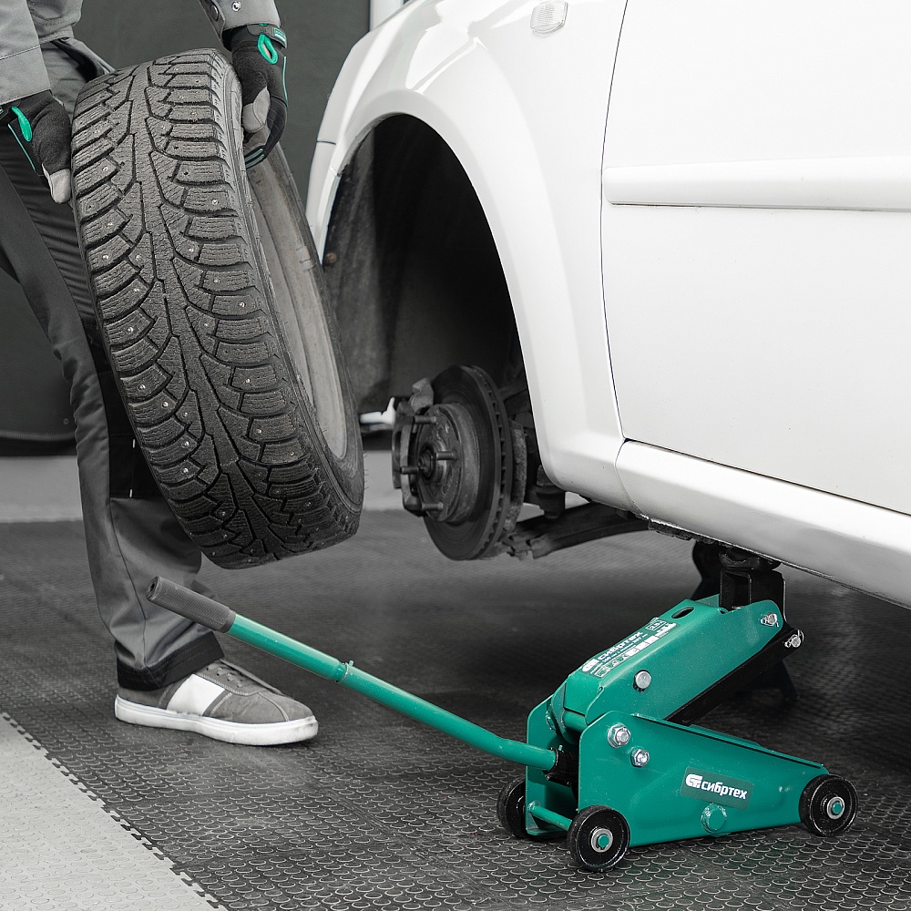 Гидравлический подкатной домкрат Сибртех 50837, поставляющийся в пластиковом кейсе, с высотой подхвата 148 мм, предназначен для подъема грузов массой до 2,5 т на высоту до 387 мм. Применяется для обслуживания автомобилей со стандартным клиренсом. Компактный домкрат подходит для самостоятельного использования автовладельцами.