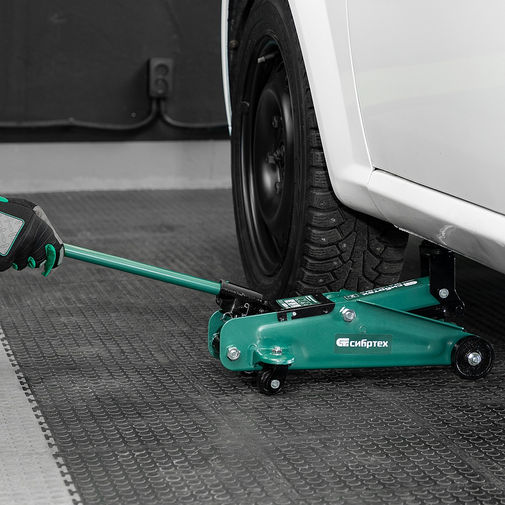 Гидравлический подкатной домкрат Сибртех 50835, поставляющийся в пластиковом кейсе, с высотой подхвата 135 мм, предназначен для подъема грузов массой до 2 т на высоту до 330 мм. Применяется для обслуживания автомобилей со стандартным клиренсом. Компактный домкрат подходит для самостоятельного использования автовладельцами.