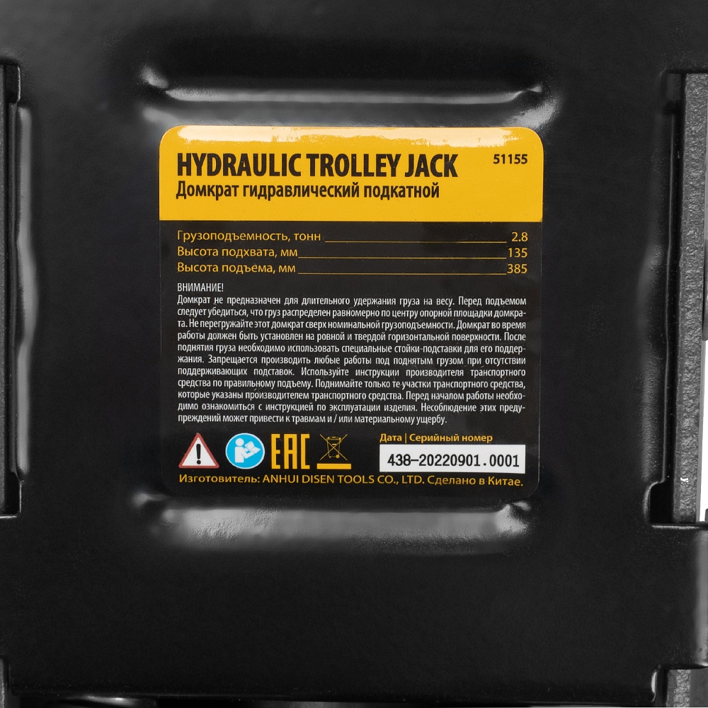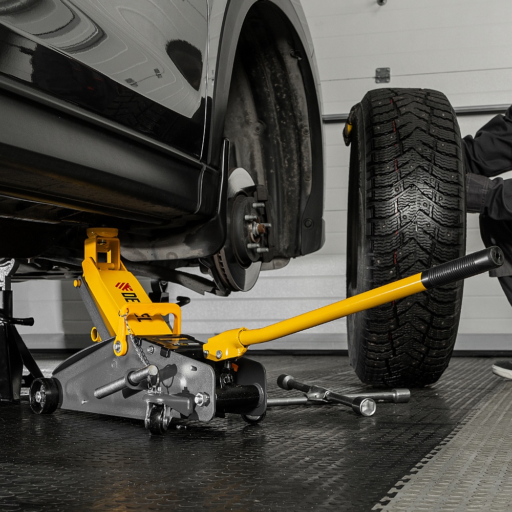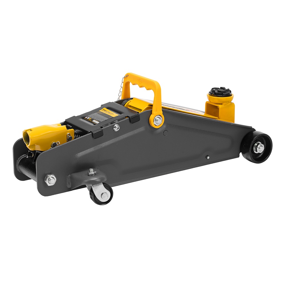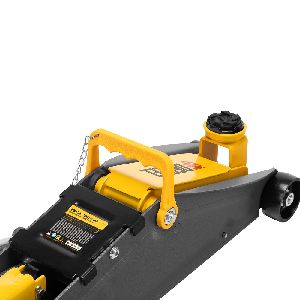 - Удобная рукоятка позволяет переносить домкрат с места на место и в случае необходимости переставляется на заднюю часть для удобного выкатывания из под автомобиля.