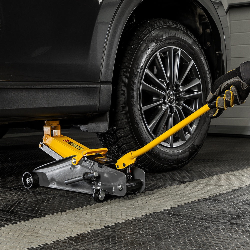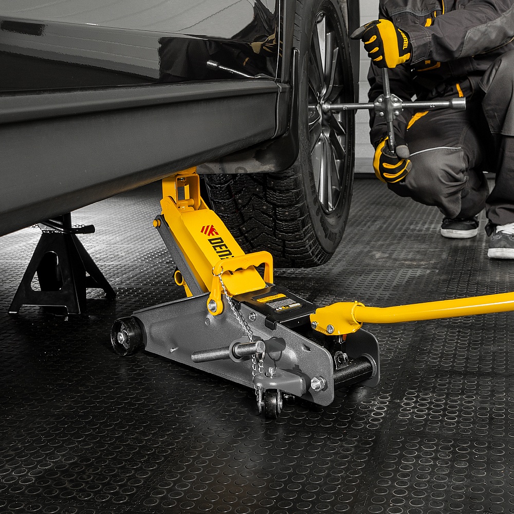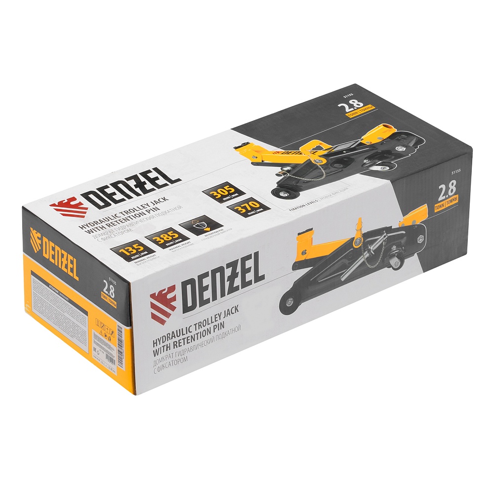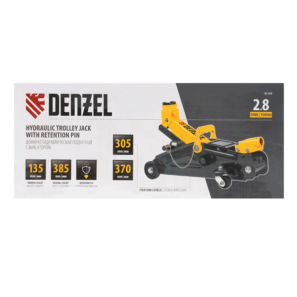 Домкрат гидравлический подкатной с фиксатором, 2,8 т, 135-385 мм Denzel