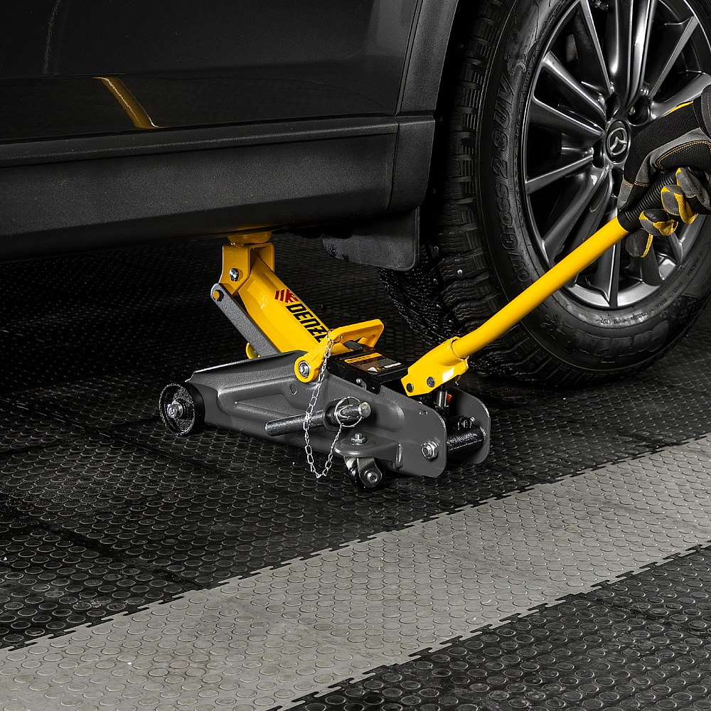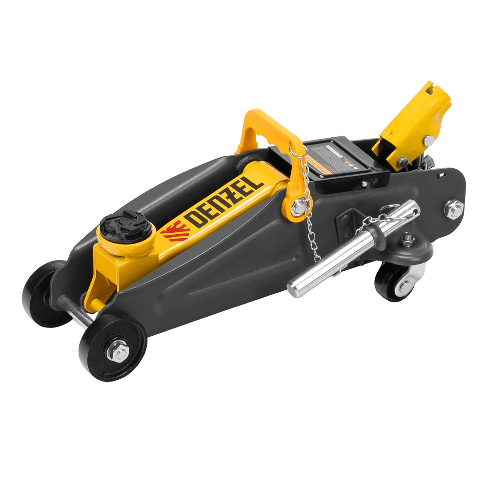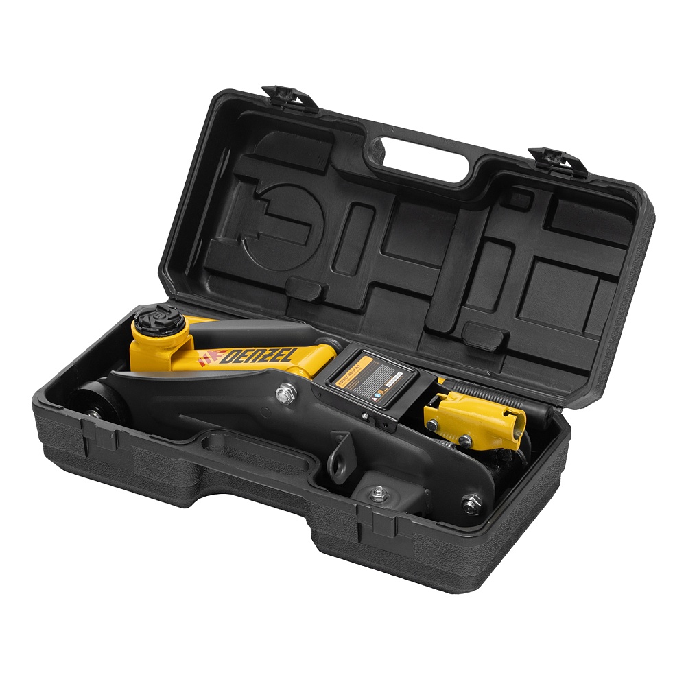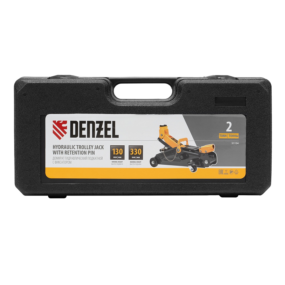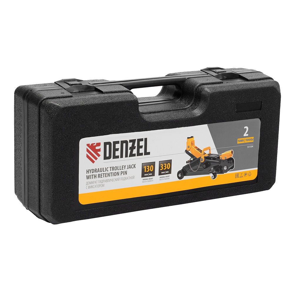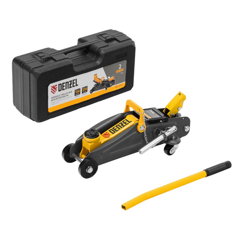 Домкрат гидравлический подкатной с фиксатором, 2 т, 130-330 мм, в кейсе Denzel