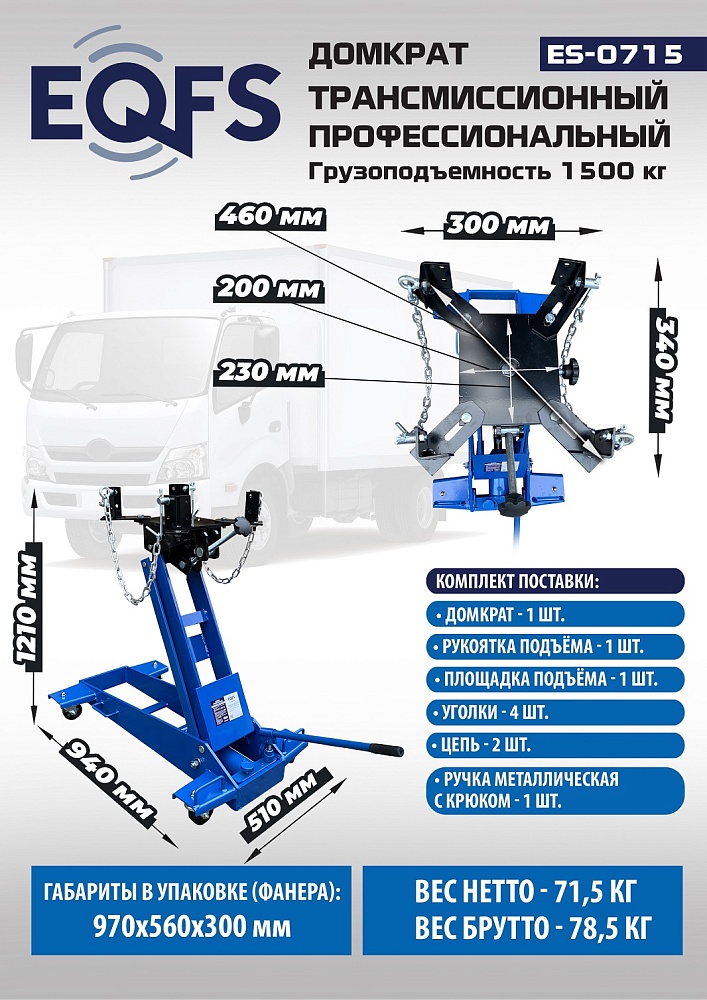 | Грузоподъемность, кг | 1 500 |