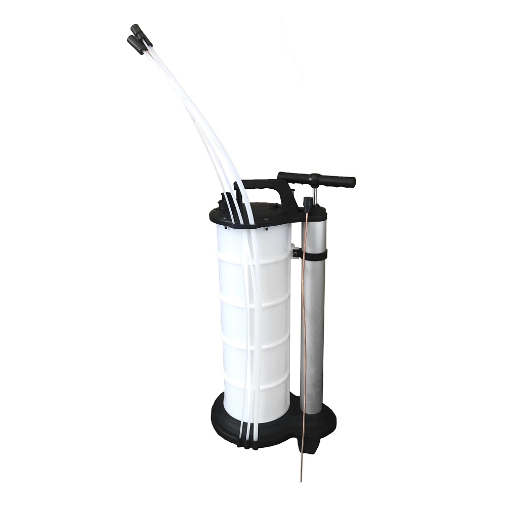 Объем бака составляет девять литров. Заборный шланг в длину один метр. Давление в процессе работы равно 62 Бар. Предкамера отсутствует. Слив жидкостей происходит через пневматический насос. Прибор разработан для замены масла в моторе, которая происходит посредством ручного насоса с использованием щуп, идущих в комплекте.