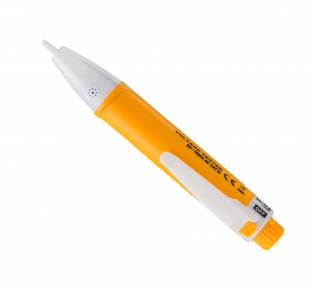 KA-1233B бесконтактный тестер напряжения Предназначен для определения наличия переменного напряжения в сети без непосредственного контакта тестера с проводником. Бесконтактная проверка наличия проводника переменного тока в пределах от 80 В до 1000 В Категория защиты: 1000В, CAT III Питание: две батареи AAA Выключение ручное и автоматическое. Особенности: Имеется три режима чувствительности, при включении режима идет светозвуковая индикация. Переключение режимов и включение-выключение в ручном режиме происходит последовательно при нажатии на кнопку включения. Низкая чувствительность (L): красный свет горит один раз и один звуковой сигнал Средняя чувствительность (M): зеленый свет горит дважды и два звуковых сигнала Высокая чувствительность (H): оранжевый свет светится три раза и три звуковых сигнала