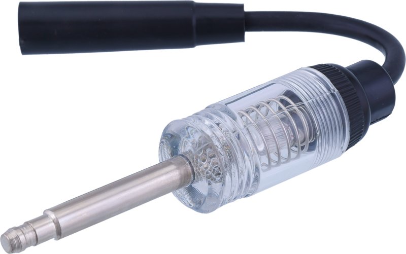 KA-2478 линейный тестер искрообразования Применяется для выявления отсутствия искры в системе зажигания. Методика проверки: Снимите высоковольтный провод свечи зажигания при выключенном двигателе. Наденьте черный разъем тестера на свечу зажигания. Вставьте металлический наконечник тестера в разъем высоковольтного провода. Попробуйте запустить двигатель. Если цепь зажигания замкнута, то сигнальная лампа будет мигать. Вспышка видна при ярком солнечном свете. Исключает риск возгорания в отличии от открытого способа диагностики искрообразования.