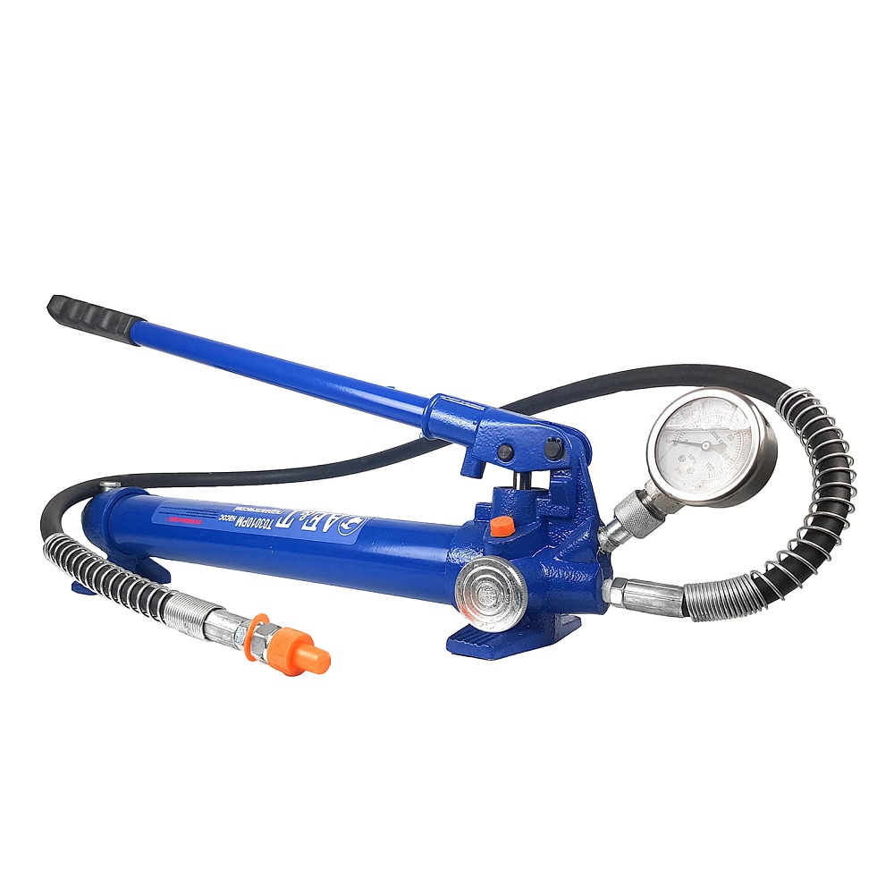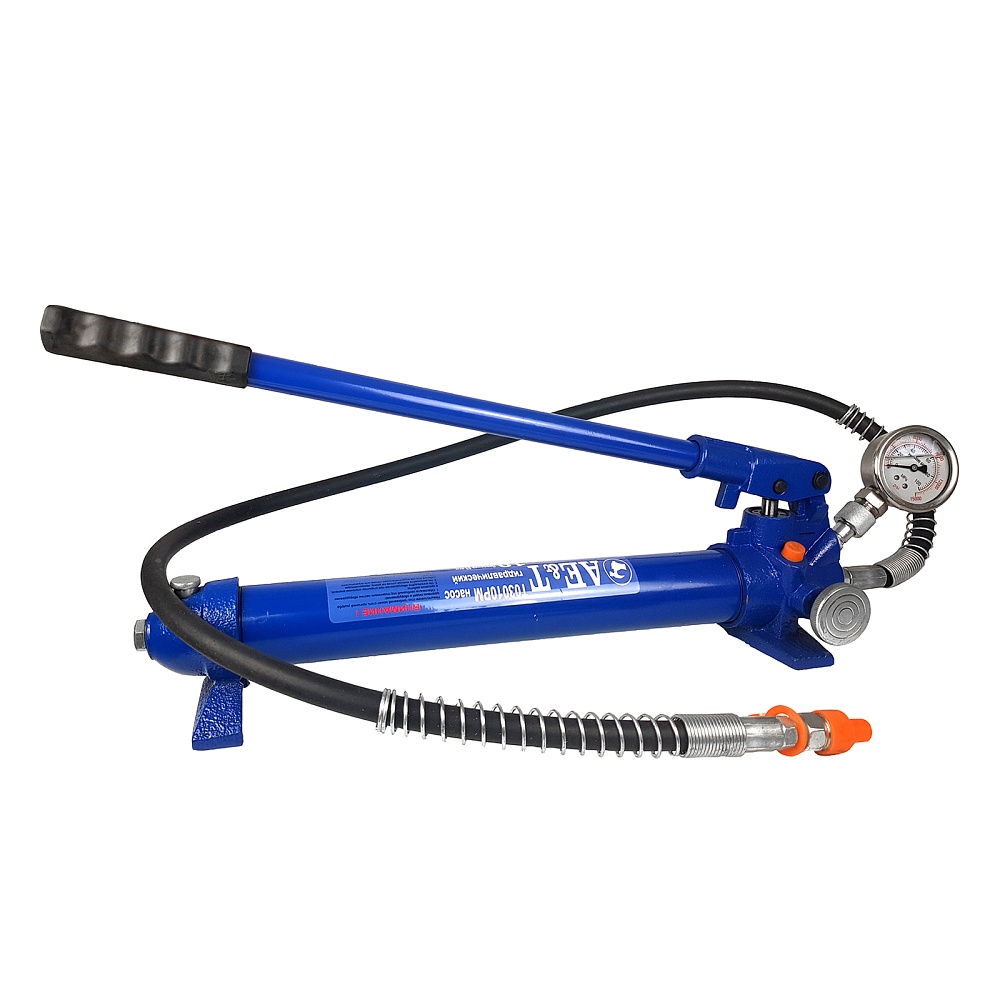 Данная модель отлично впишется в арсенал как простого автолюбителя, так и на серьезную СТО или в автосервис. Цилиндры легко подключать благодаря стандартному разъему NPT ¼”, а большой, легко читаемый манометр позволяет отслеживать нагрузку и точнее дозировать ее. Чтобы упростить работу оператора и не ставить его в тупик перед большими низкими грузами, шланг специально увеличен до 1200 мм, таким образом, установить насос можно действительно далеко от цилиндра. Долговечность обеспечивают современные узлы, усиленный пружинами шланг, толстая сталь и качественная прокраска по всей поверхности корпуса.