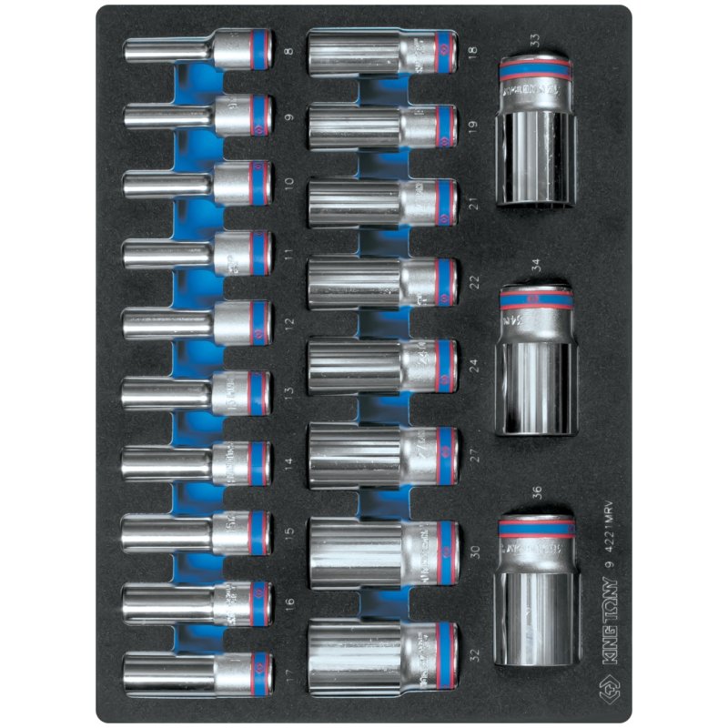 KING TONY Набор глубоких торцевых головок 1/2", двенадцатигранные, 8-36 мм, ложемент, 21 предмет KING TONY 9-4221MRV купить в Самаре цена ✅ - Все для СТО