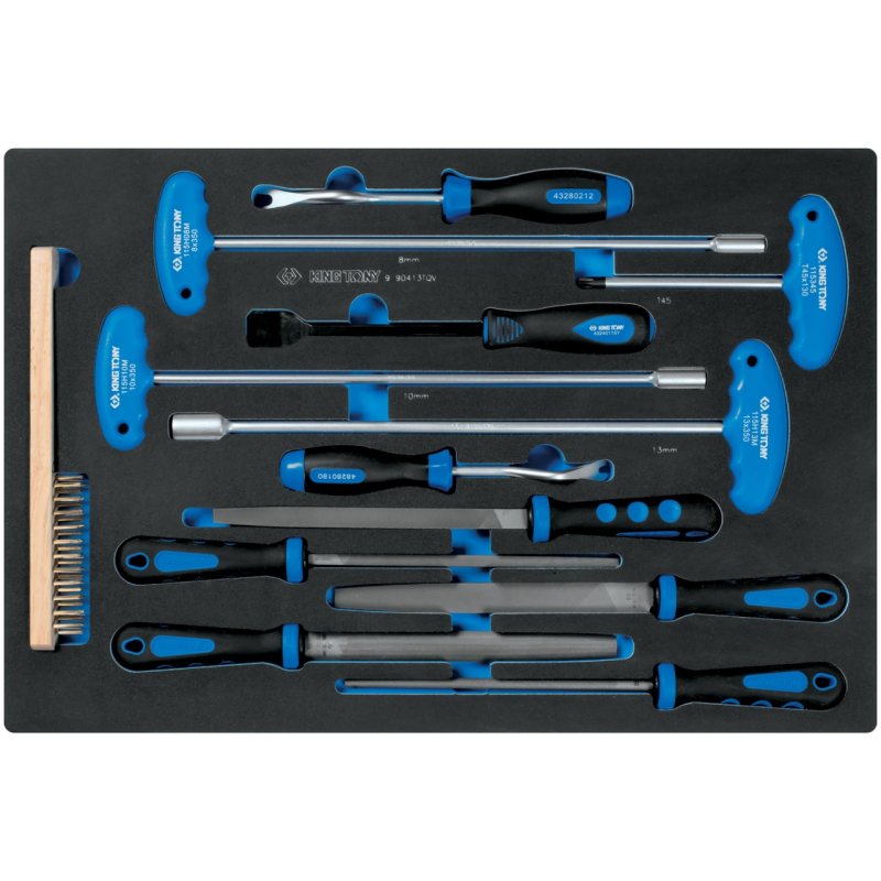 KING TONY Набор напильников, ключей торцевых Т-типа, съемники клипс и металлическая щетка, ложемент, 13 предметов KING TONY 9-90413TQV купить в Самаре цена ✅ - Все для СТО
