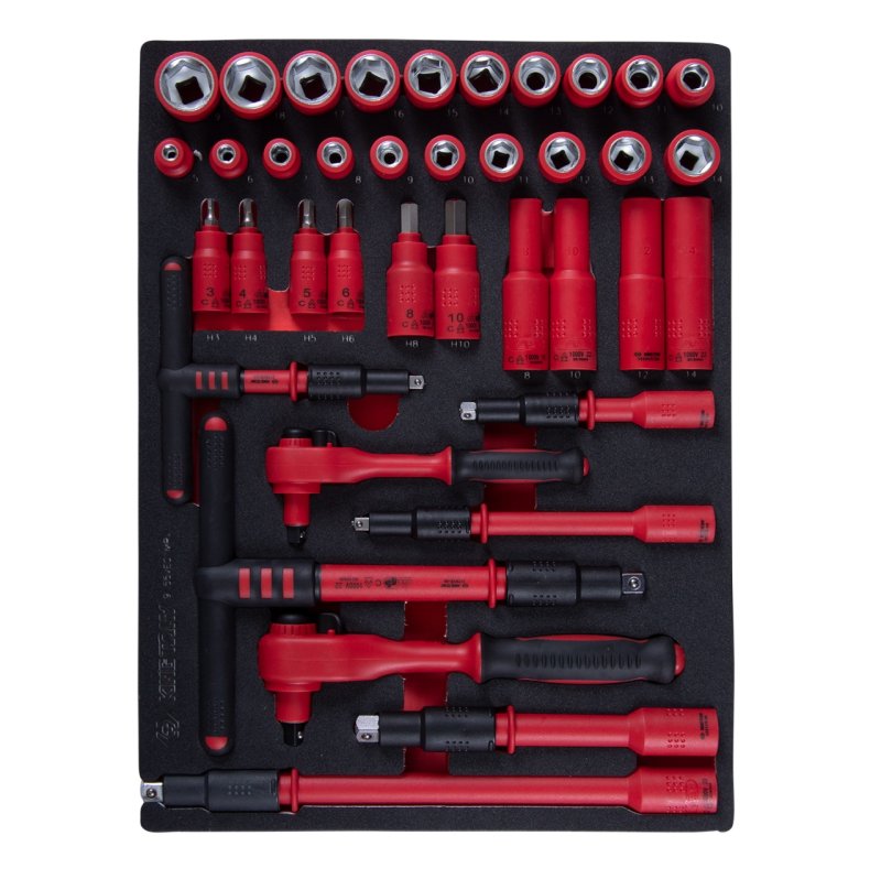 KING TONY Набор торцевых диэлектрических головок с принадлежностями 1/4", 3/8", шестигранные, 5-19 мм, ложемент, 38 предметов KING TONY 9-55VE01MRV