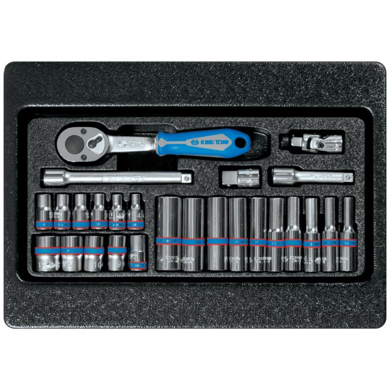 KING TONY Набор торцевых головок 1/4" с принадлежностями, ложемент, 26 предметов KING TONY 9-2526MR купить в Самаре цена ✅ - Все для СТО