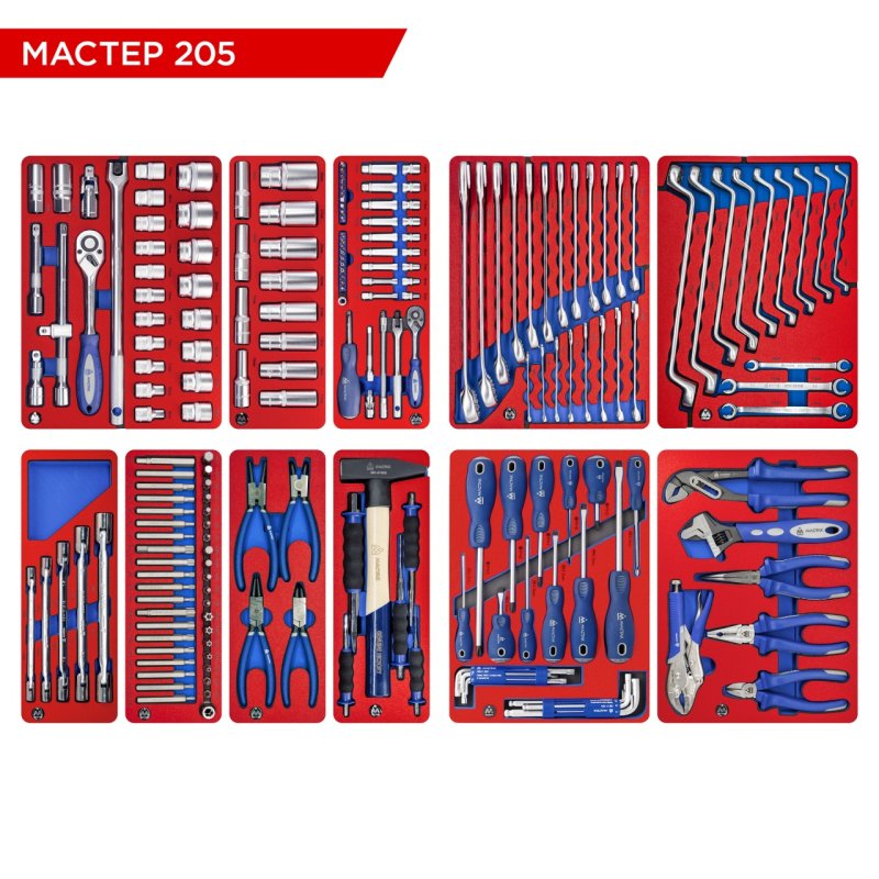 МАСТАК Набор инструментов "МАСТЕР" для тележки, 11 ложементов, 205 предметов купить в Самаре цена ✅ - Все для СТО