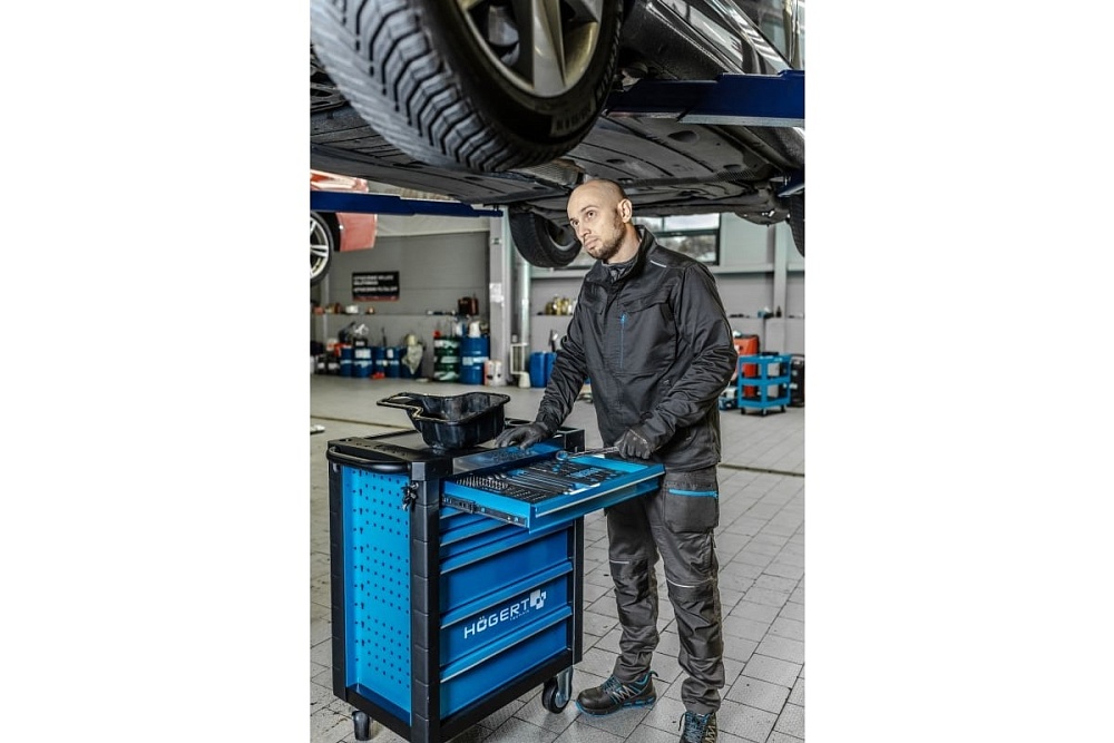 Практичный шкаф для инструментов с 6 ящиками для хранения инструментов и аксессуаров. Он понадобится в автомастерской или в гараже каждого энтузиаста DIY. Шкаф имеет современный вид, который идеально вписывается в интерьер различных мастерских или гаражей. Это также подчеркивает профессиональный характер рабочего места. Он изготовлен из прочных материалов, что гарантирует его долгий срок службы и устойчивость к повреждениям. Устойчивая конструкция обеспечивает надежное хранение ценных инструментов. Шкаф оснащен 2 фиксированными и 2 поворотными колесами из прочного материала TPR. Это позволяет легко перемещать шкаф по мастерской или гаражу даже с большим грузом.