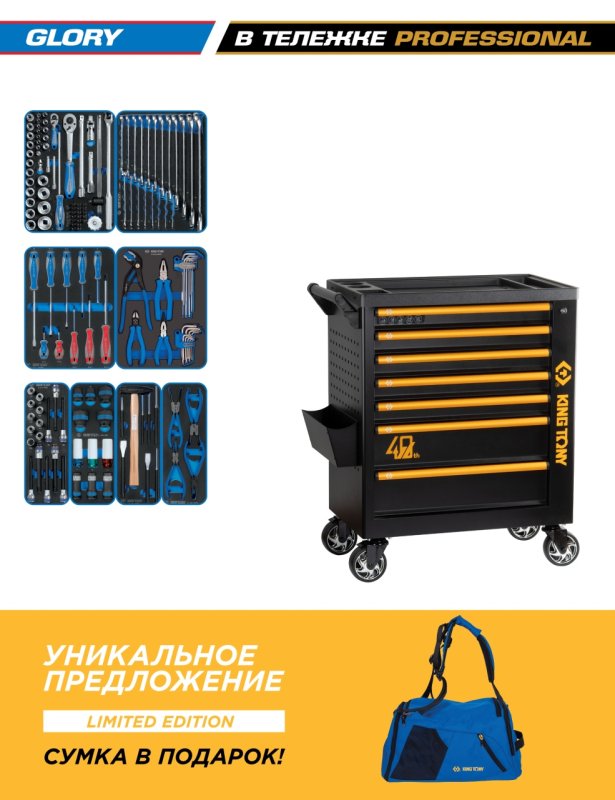 Набор инструментов 152 предмета, "GLORY", в черной тележке KING TONY 9G38-152MRV40 купить в Самаре цена ✅ - Все для СТО