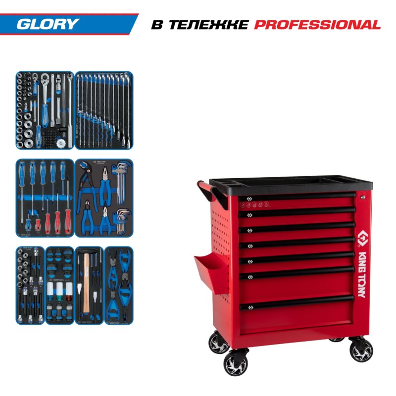 Набор инструментов 152 предмета, "GLORY", в красной тележке KING TONY 9G38-152MRVR купить в Самаре цена ✅ - Все для СТО