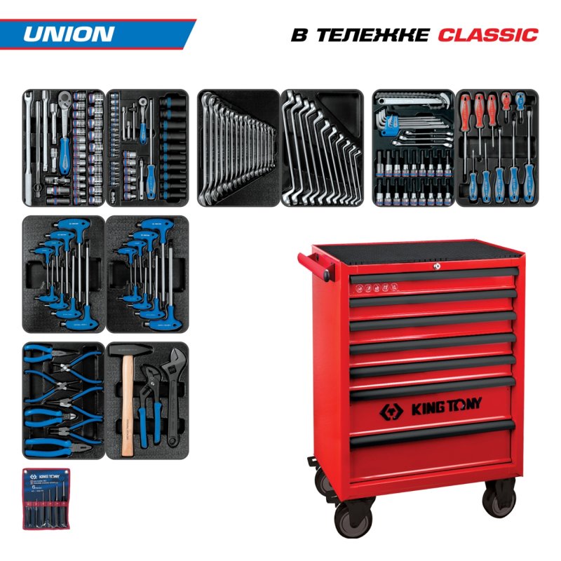 Набор инструментов 173 предмета, "UNION", в красной тележке KING TONY 934-000MR купить в Самаре цена ✅ - Все для СТО