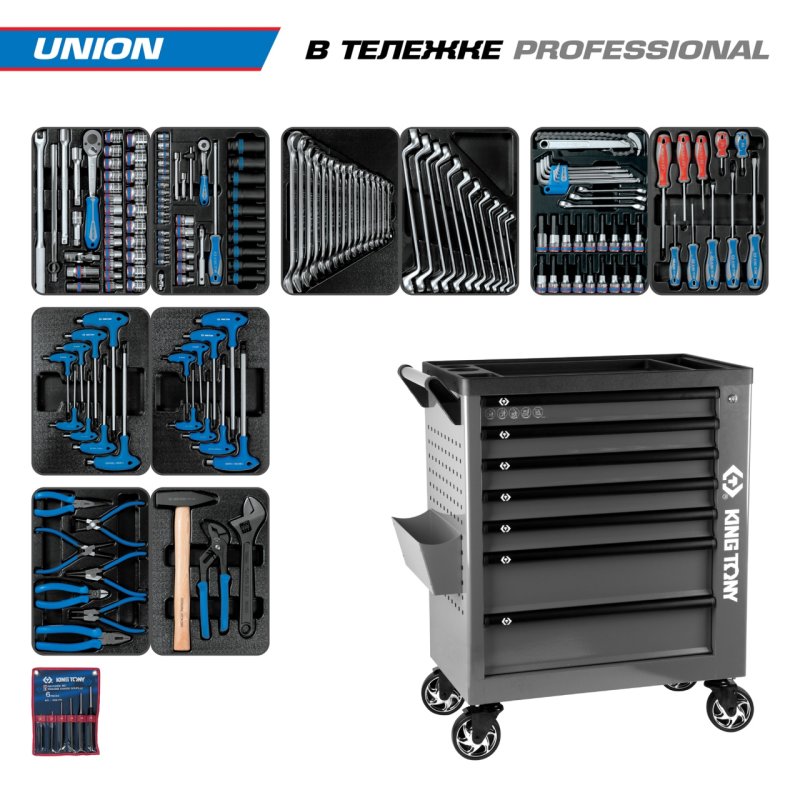 Набор инструментов 173 предмета, "UNION", в серой тележке KING TONY 9G38-000MRG купить в Самаре цена ✅ - Все для СТО