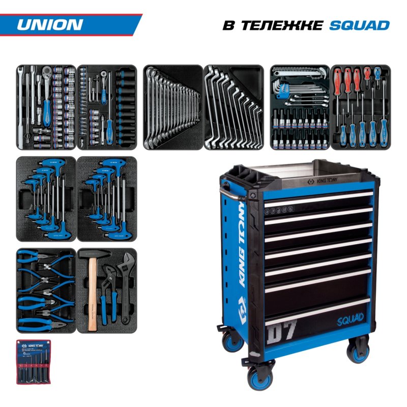 Набор инструментов 173 предмета, "UNION", в синей тележке KING TONY 9SQ31-000MR купить в Самаре цена ✅ - Все для СТО