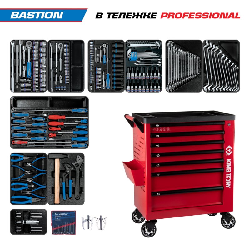 Набор инструментов 204 предмета, "BASTION", в красной тележке KING TONY 9G38-100MRR купить в Самаре цена ✅ - Все для СТО