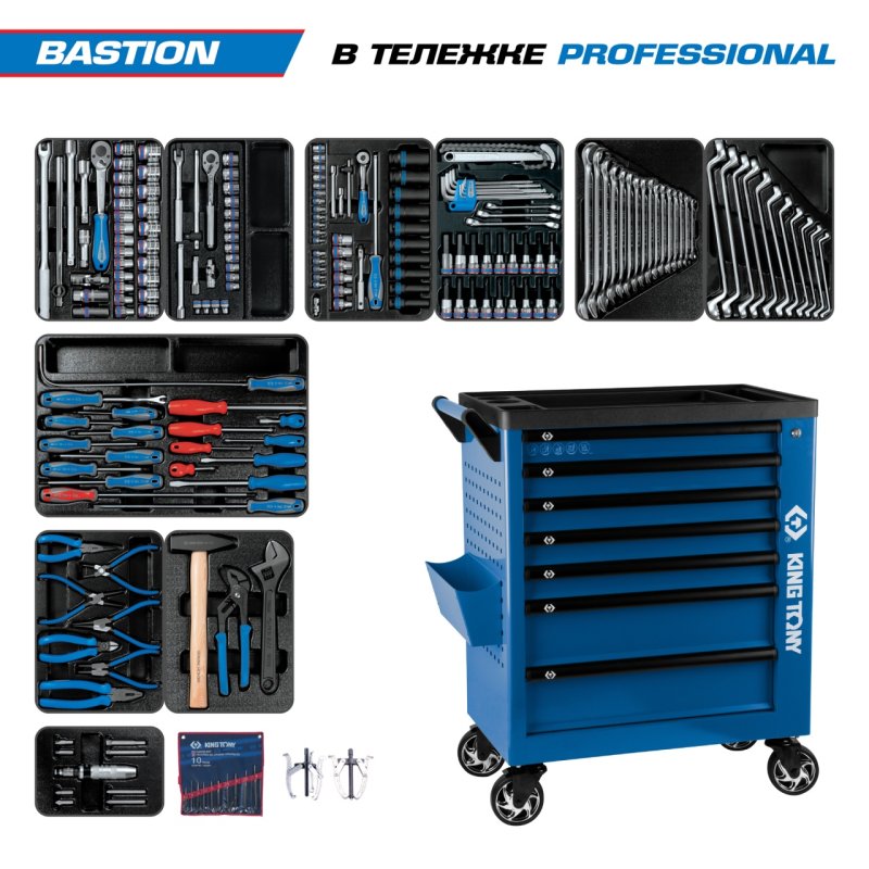 Набор инструментов 204 предмета, "BASTION", в синей тележке KING TONY 9G38-100MRB купить в Самаре цена ✅ - Все для СТО