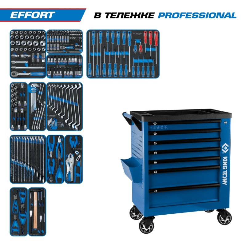 Набор инструментов 235 предметов, "EFFORT", в синей тележке KING TONY 9G38-235MRVB купить в Самаре цена ✅ - Все для СТО