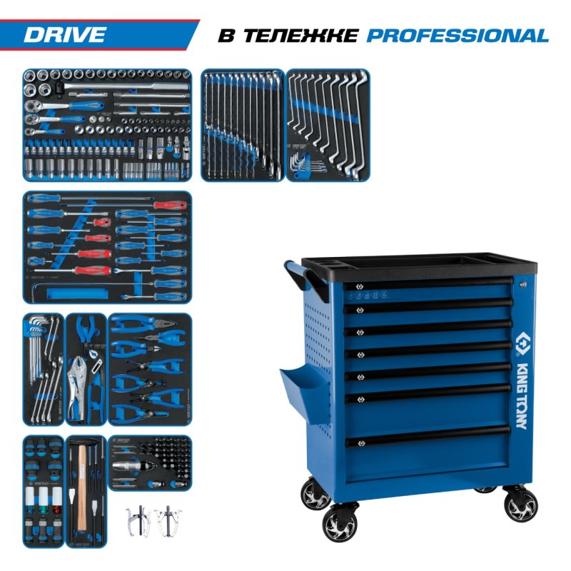 Набор инструментов 251 предмет, "DRIVE", в синей тележке KING TONY 9G38-251MRVB купить в Самаре цена ✅ - Все для СТО