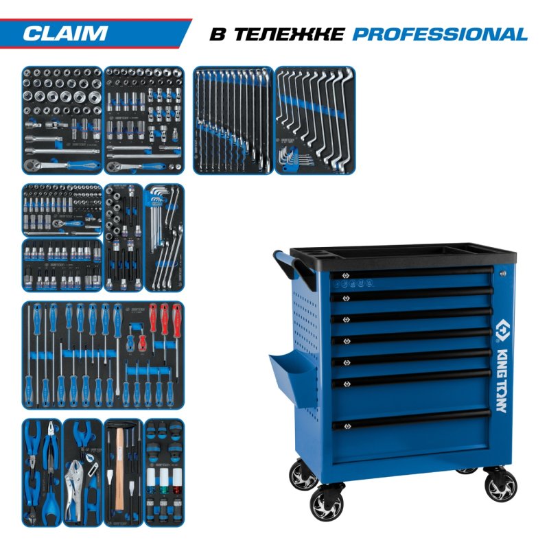 Набор инструментов 286 предметов, "CLAIM", в синей тележке KING TONY 9G38-286MRVB купить в Самаре цена ✅ - Все для СТО
