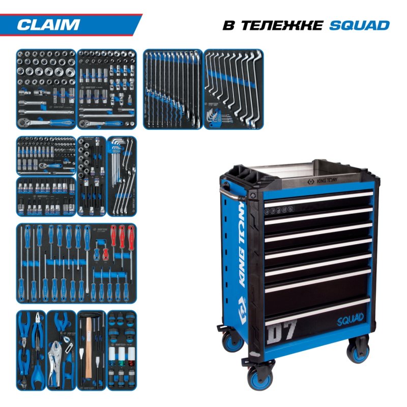Набор инструментов 286 предметов, "CLAIM", в синей тележке KING TONY 9SQ31-286MRV купить в Самаре цена ✅ - Все для СТО