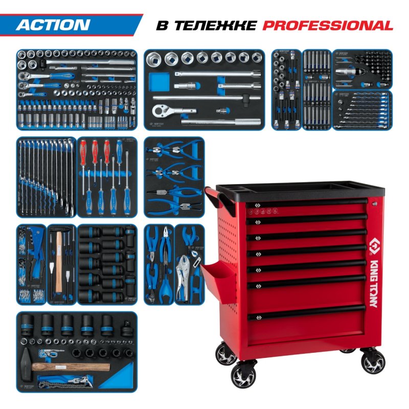 Набор инструментов 327 предметов, "ACTION", в красной тележке KING TONY 9G38-327MRVR купить в Самаре цена ✅ - Все для СТО