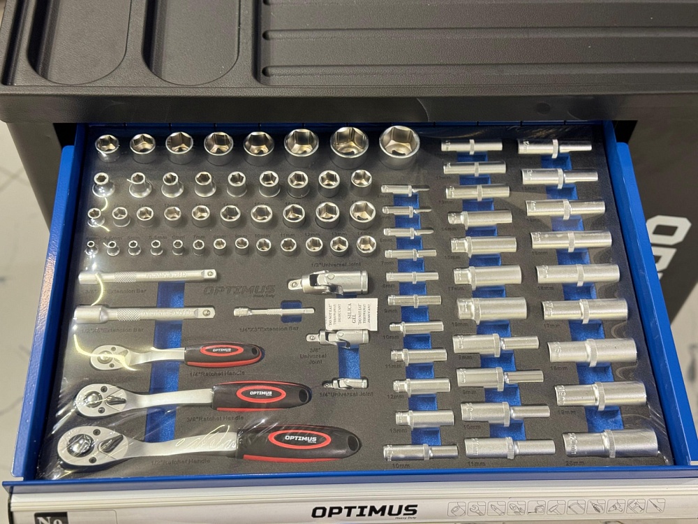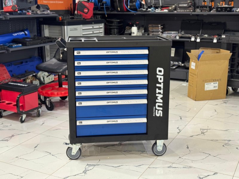 OPT-917P Тележка инструментальная 7 полок с набором инструментов, пластиковая столешница (289 предметов) Optimus купить в Самаре цена ✅ - Все для СТО