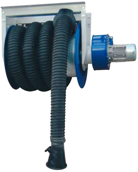 Вытяжная катушка Filcar ACA-MAXI-125/17-COMP с пружинным механизмом сматывания шланга и вентилятором.
