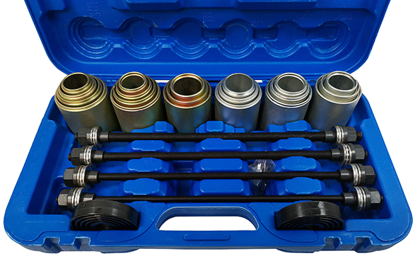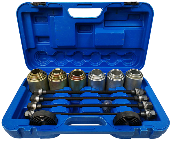 Набор для монтажа и демонтажа подшипников и сайлентблоков универсальный позволяет производить замену подшипников, сайлентблоков и втулок.