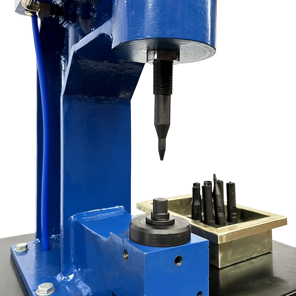 Пневматический клепальный станок служит для восстановления тормозных колодок грузовых автомобилей и предназначен для использования в грузовом автосервисе. Станок можно использовать для восстановления большинства типов тормозных колодок автомобилей, а также для крепления накладок феррадо, так как в комплект входит широкий выбор насадок. Максимальное усилие станка 3000 кг. Для работы со станком требуется только подвод сжатого воздуха.
