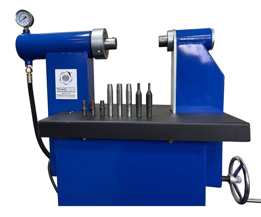 В шток вкручивается пуансон требуемого диаметра, регулируется по ширине  контргайкой;