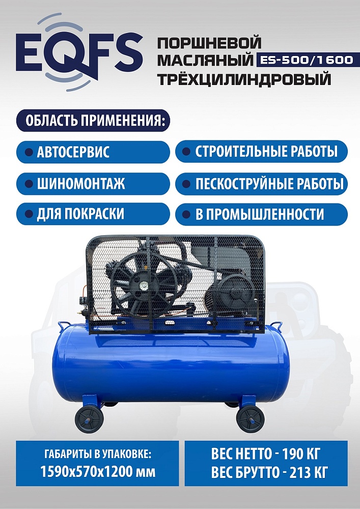ES-500/1600 Компрессор поршневой трехцилиндровый купить в Самаре цена ✅ - Все для СТО