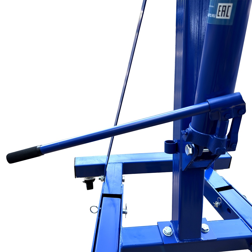 Кран гаражный гидравлический, складной.  Грузоподъемность 2,0 т. Высота подъема 2380мм. Длина стрелы 1500мм. Высота крана 1400мм.