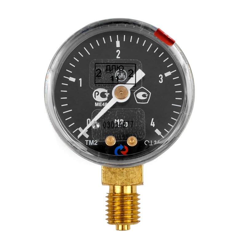 Сварочный манометр типа ТМ, серия 10. Применяется для измерения давления в жидких и газообразных, не вязких и не кристаллизирующихся измеряемых средах, с температурой до 80°C, неагрессивных к медным сплавам. Широко применяется в баллонных редукторах и регуляторах.