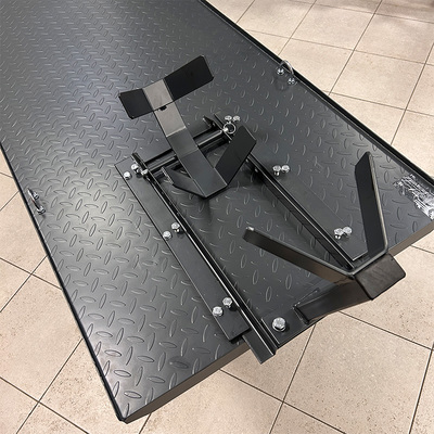 Подъемник оснащен механическим перекидным зажимом, имеющим достаточно широкий диапазон по размеру зажимаемых колес и возможность увеличения длины платформы на 200 мм благодаря выдвижной конструкции зажима. На платформе есть технический люк для облегчения демонтажа заднего колеса, но для удобства данной операции рекомендуется использовать любой из механических подъёмников.