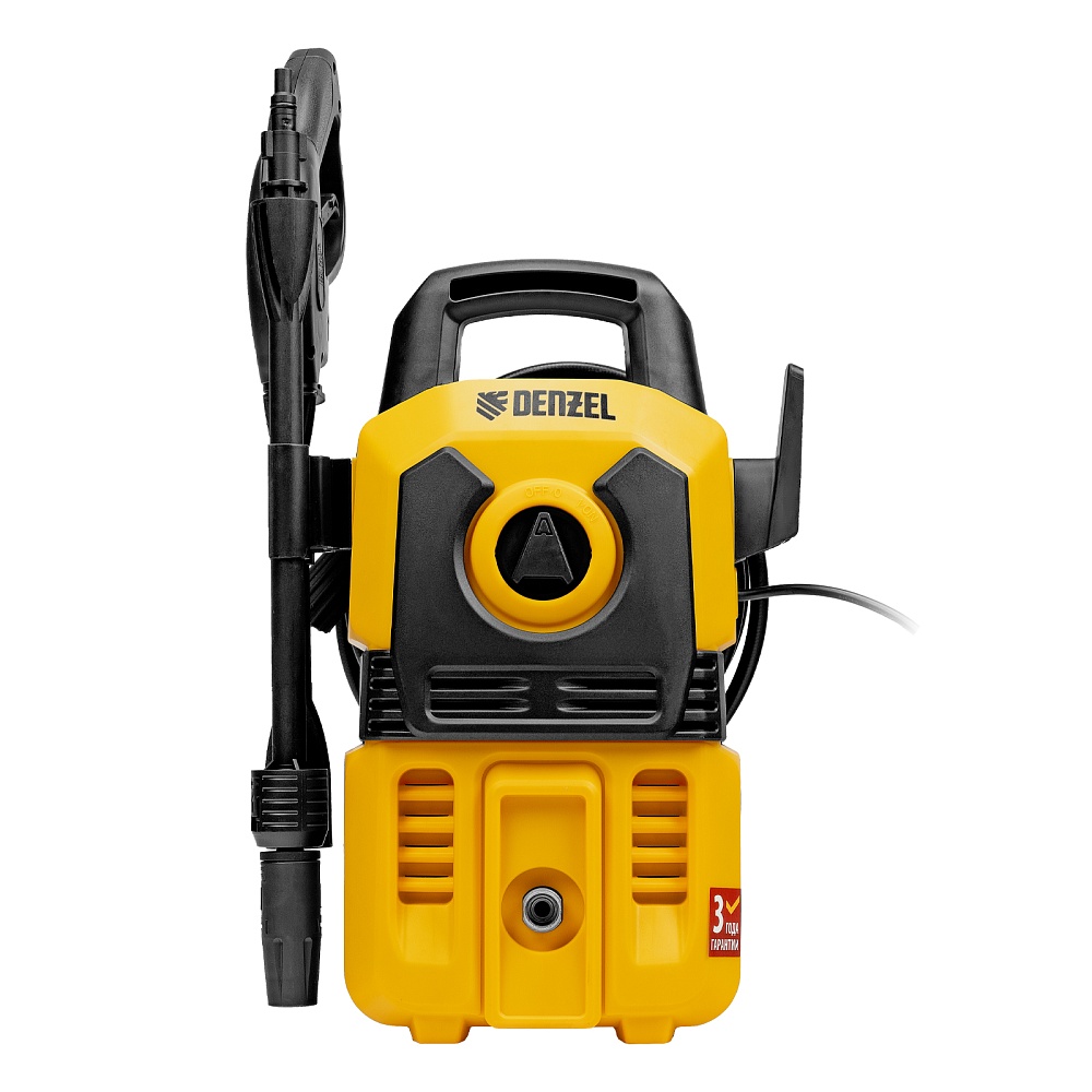 <p>Моечная машина высокого давления Denzel R-110 58258 мощностью 1400 Вт предназначена для мытья различных поверхностей при помощи водяной струи под давлением. Максимальное давление составляет 110 бар, производительность — 320 л/ч. С помощью мойки можно быстро и эффективно очистить фасад дома, дорожки на дачном участке, кузов автомобиля, садовую мебель и инвентарь. Машина подключается к водопроводной сети, а в случае ее отсутствия может забирать воду из любого открытого резервуара, работая в режиме самовсасывания. Рекомендована для использования в быту.</p><h2>Преимущества</h2><ul><li>Надежность — помпа с металлическими плунжерами выдерживает высокие нагрузки и обеспечивает стабильную работу в течение длительного времени.</li><li>Удаление въевшихся загрязнений — при необходимости можно использовать моющие средства, для этого предусмотрен внешний бачок с насадкой пеногенератора.</li><li>Эффективность — регулируемая насадка-сопло позволяет настраивать тип и интенсивность распыления в соответствии с поставленной задачей.</li><li>Простая подготовка к работе — благодаря быстросъемному адаптеру подключение входного шланга не занимает много времени.</li><li>Защита от засорения — фильтр входного штуцера задерживает посторонние частицы.</li><li>Безопасность — токопроводящие элементы надежно изолированы, внутренние части машины защищены от попадания воды по стандарту IPX5.</li><li>Защита от случайного пуска — перед началом работы необходимо разблокировать рычаг моечного пистолета.</li><li>Защита от превышения допустимого давления — манометрический выключатель останавливает насос при отпущенном рычаге пистолета.</li><li>Термозащита — производитель предусмотрел датчик температуры, электродвигатель автоматически отключается при перегреве.</li><li>Комфортное передвижение — длина кабеля и шланга высокого давления составляет 5 м.</li><li>Мобильность и компактность — благодаря рукоятке и легкому весу машина легко перемещать и транспортировать, а также она не занимает много места в зоне хранения.</li><li>Несложный уход — в комплект поставки входит игла для прочистки сопла.</li><li>Продуманная конструкция — кронштейны для шнура питания и шланга высокого давления, а также держатель для пистолета обеспечивают удобство хранения.</li><li>Гарантия 3 года — надежность мойки высокого давления подтверждена производителем.</li></ul>