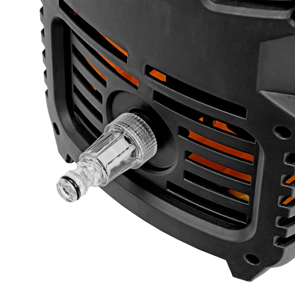 Мойка высокого давления, Шланг высокого давления, Пистолет моечный, Насадка-удлинитель пистолета, Регулируемая насадка-сопло, Пеногенератор с бачком для моющего средства, Входной штуцер с фильтром, Быстросъемный коннектор шланга, Игла для прочистки сопла, Кронштейн-держатель пистолета, Кронштейн для кабеля питания, Комплект крепежа, Инструкция по эксплуатации с гарантийным талоном